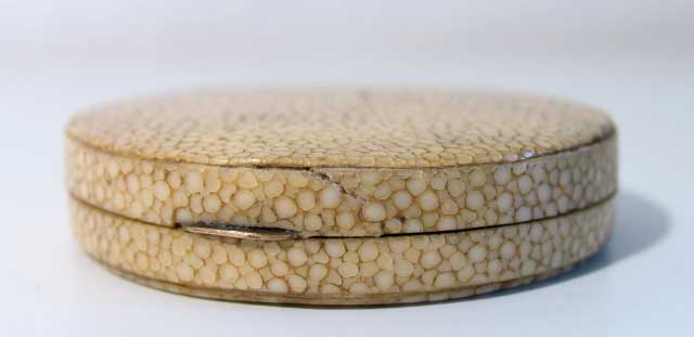 The definitions in Google Dictionary are “sharkskin used as a decorative material” and “a kind of untanned leather with a rough granulated surface.” You are obviously capable of walking up to something, pointing to it, and say, “That’s shagreen.” I’m giving it to you.