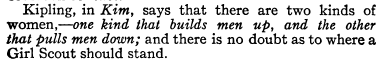 Passage from 1916 Girl Scout handbook urging scouts to build men up.