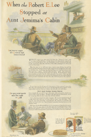 I’ve been meaning to do a post on Aunt Jemima for months, and have done a huge amount of research, which is a sign I’ll probably never get to it. So I’ll just say that after years of ads where she’s constantly ordered to make pancakes as an enslaved person