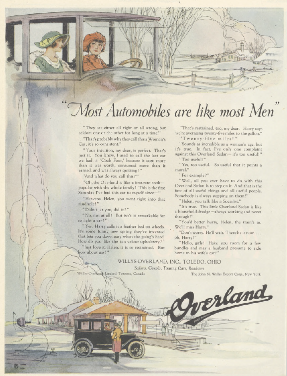 Helen and her friend muse about men, gas mileage,** and socialism on their way to pick up Helen’s husband Harry at the station.