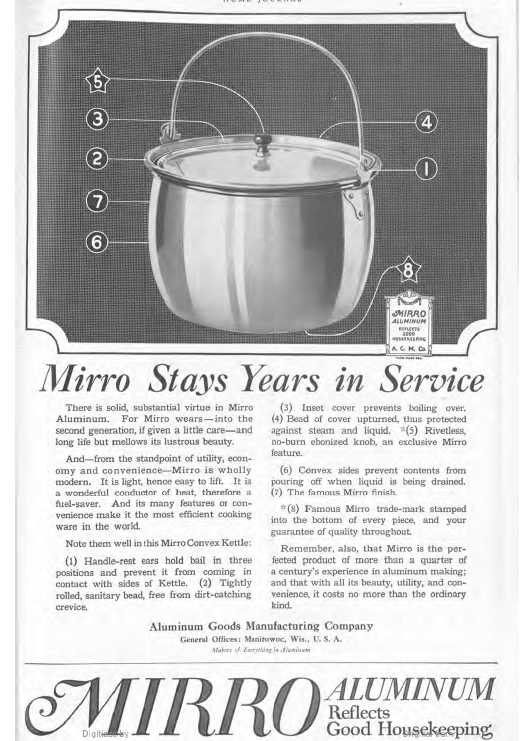 Picture of kettle in Mirro Kettle ad, Ladies' Home Journal, 1920.