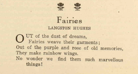 You can judge the poems for yourself, but, as something of a connoisseur, I have to say that “The Fairies” is not top-tier ca. 1920 fairy poetry. It is, however, the kind of writing that gets you published in The Brownies’ Book, which is what Hughes was aiming for.