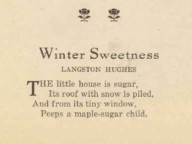 In September 1920, Hughes submitted three poems to The Brownies’ Book. Jessie Redmon Faust, the magazine’s literary editor, wrote to Hughes accepting one of the poems, “The Fairies,” which she considered “very charming.” She asked if he had any stories about Mexico, or if he knew of any Mexican games. Hughes sent her an article about Mexican games, along with some more poems. “Fairies” and another poem, “Winter Sweetness,” appeared in the January 1921 issue of The Brownies’ Book, along with the article.