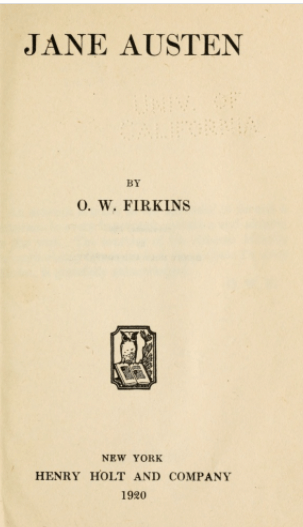 I ordered Oscar Firkins’ 1920 book Jane Austen two years ago, while I was in Washington during the early months of COVID. I figured it would shed interesting light on how Austen was viewed at the time. What I wasn’t expecting was a delightful romp through her work that brightened some lonely afternoons during that terrible spring.
