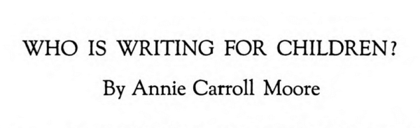 Last year, I grumbled that my go-to children’s book resource, pioneering children’s librarian and Bookman columnist Annie Carroll Moore, was too busy waxing whimsical to make book recommendations. The year before, I moaned about the poor selection of books on offer.