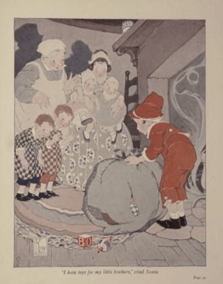 Sarah Addington’s The Boy Who Lived in Pudding Lane, illustrated by Gertrude A. Kay, is Santa’s origin story. “The younger children will be amused to read how the very fat little boy who always wore a red suit came to make toys for all children the wide world over,” Cutter tells us.