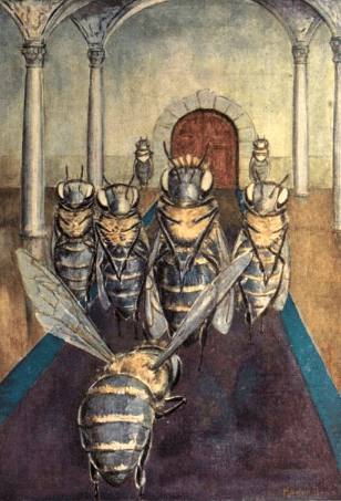 The Adventures of Maya the Bee by Waldemar Bonsels, illustrated by Homer Boss, was published in German in 1912 and (after a postwar cooling down period, presumably) first appeared in English in 1922. It’s the story of Maya, a bee who gets caught up in bee-hornet warfare. “One of the most delightful insect stories every written,” Cutter raves, which strikes me as a low bar. In any case, I’m not enthusiastic about the German militarism angle, plus the pictures freak me out, so I’m passing.*****