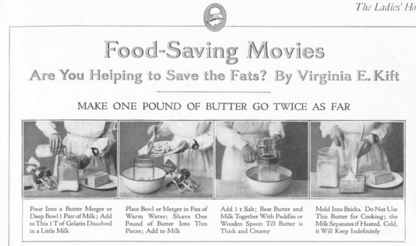 1918 situation: You want to show video clips of how to do your bit for food conservation by saving fat.
