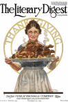 It wouldn’t be Thanksgiving without Norman Rockwell. In 1919, his iconic 1943 Thanksgiving picture Freedom from Want was still far in the future, but he did do a Thanksgiving cover for the November 22 issue of Literary Digest: