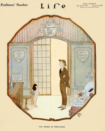 He was born in Ohio in 1880, moved to New York after a few years at Kenyon college, took night classes in art for a few months, and soon established his own advertising agency, because that’s how life worked in 1919, for some people, anyway. Among his employees was the young Edward Hopper. He joined the staff of Life magazine in 1907 and drew his first “fadeaway girl” cover the next year.