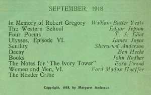 I expected to sit on my born-into-a-world-where-modernism-already-existed perch and scoff at the reviews, which I assumed would be along the lines of the article in the first issue of Time magazine speculating that The Waste Land was a hoax. On the whole, though, they were quite positive, especially the ones in American publications.